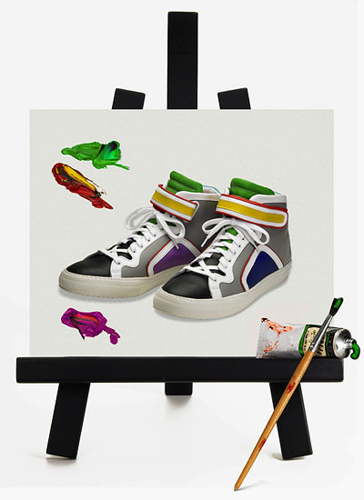 Il a dessiné des chaussures pour les plus grands: Christian Dior, Hermès, Balenciaga, mais c’est sous son nom que le créateur Pierre Hardy signe cette paire de sneakers pleine de couleurs.
